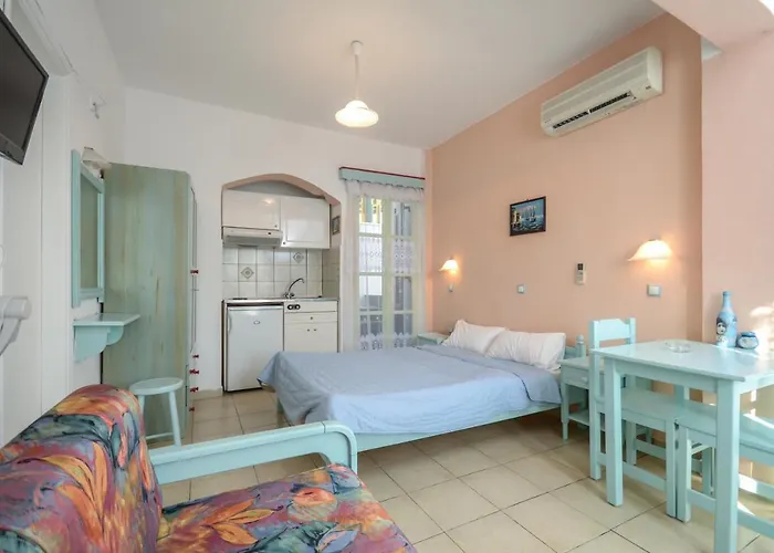 Situé dans le quartier Agios Georgios Beach de Naxos City, l'appartement Summer Times Studios est à 5 km de l'aéroport national de l'île de Naxos. L'appartement offre des chambres avec un coffre personnel et une TV multi-canal, ainsi qu'une bouilloire électrique et un réfrigérateur pour le self-catering.